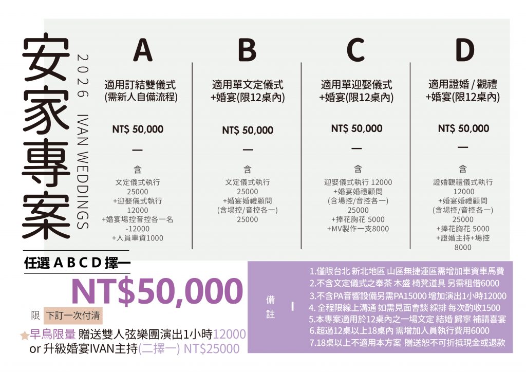 ★早鳥限量★ 【 2026安家專案 】任選A B C D 擇一 即日起至2/28止 只要50000